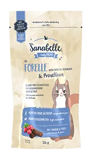 Bosch Sanabelle Cat Sticks Trout Cranberry - это уникальное лакомство со вкусом форели и клюквы для кошек любых пород.