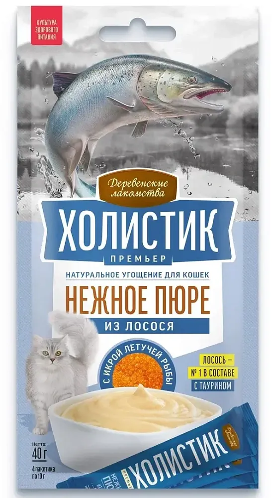 Деревенские лакомства Холистик Нежное пюре из лосося с икрой летучей рыбы, 10 г х 4 шт