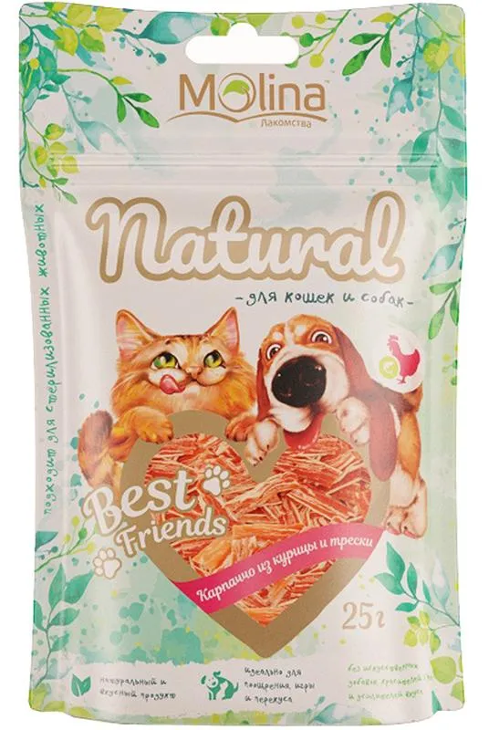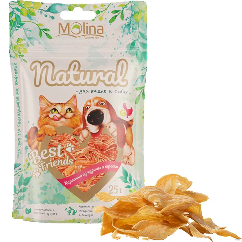 Карпаччо из курицы и трески обязательно порадует вашего питомца. Натуральный и вкусный продукт, без искусственных добавок, красителей, ГМО и усилителей вкуса, идеален для поощрения, игры, перекуса и дрессировки. А еще эти лакомства подходят для четвероногих друзей: котов и собак!