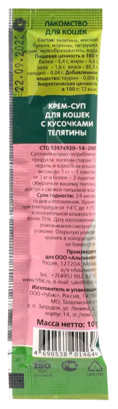 ТИТБИТ Крем-суп для кошек с кусочками телятины, 10 г